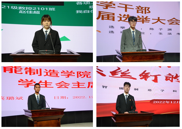 随后,大会进行第十四届团总支学生会竞聘。候选人按抽签顺序依次上台进行了竞聘演说,他们分别从个人简介、任职经历、竞争优势以及未来规划等方面表达了自己对于建设学生会组织的憧憬和规划。