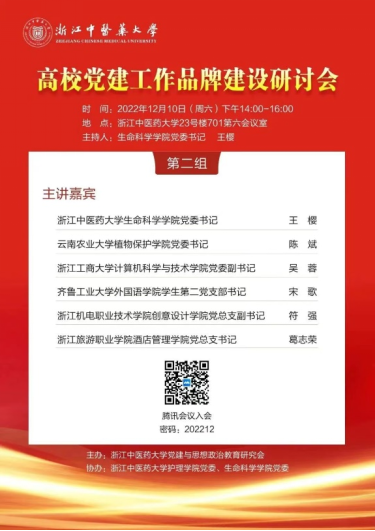 12月10日,党建与思想政治教育研究会2022年年会暨高校党建工作品牌建设研讨会在浙江中医药大学滨江校区举行。我校创意设计学院党总支副书记符强作为主讲嘉宾应邀参会,作了题为《汇聚共识积聚优势凝聚力量打造高校党建合作共同体》的主旨发言。