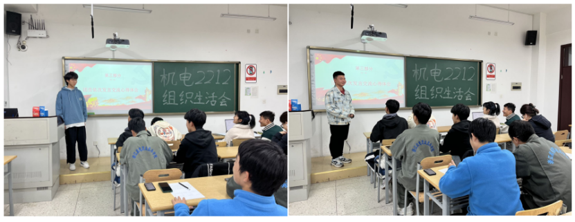 自动化学院机电2212团支部书记郑芳芳就今年开展“学习二十大、永远跟党走、奋进新征程”主题教育实践活动情况和本次组织生活会准备工作作了专题报告,并结合团支部工作和个人实际作交流发言。