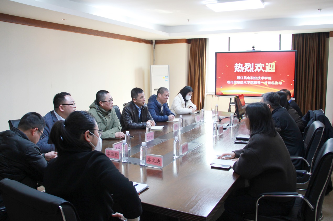 2月20日下午,现代信息技术学院院长卢涤非、党总支书记张荣路等一行7人走访调研了杭州东忠科技股份有限公司,深度推进产教融合,深入调研企业人才需求。杭州东忠科技股份有限公司CEO杨宇明、东忠集团ES事业部部长鲍巧玲、人力资源部部长汤晓晓等接待分院调研一行并进行了座谈交流。