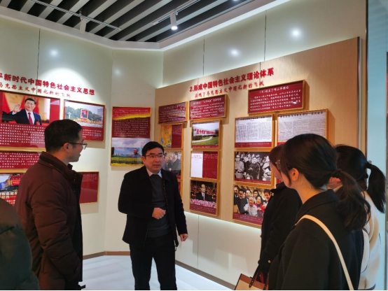 座谈会后,查院长陪同来宾参观了我院筑牢“红色根脉”主题实践教育基地。该基地建设基于全方位、全时空、全场域的大思政课建设理念,着力构建“史实一体”“理实一体”“虚实一体”相融合的“三实一体”大思政课实践育人体系,以鲜明的时代主题、丰富的展陈资源和电子资源,融思想性、理论性、体验性和趣味性于一体,呈现了浙江精神谱系特质,阐发了新时代浙江高质量发展的宏伟蓝图。