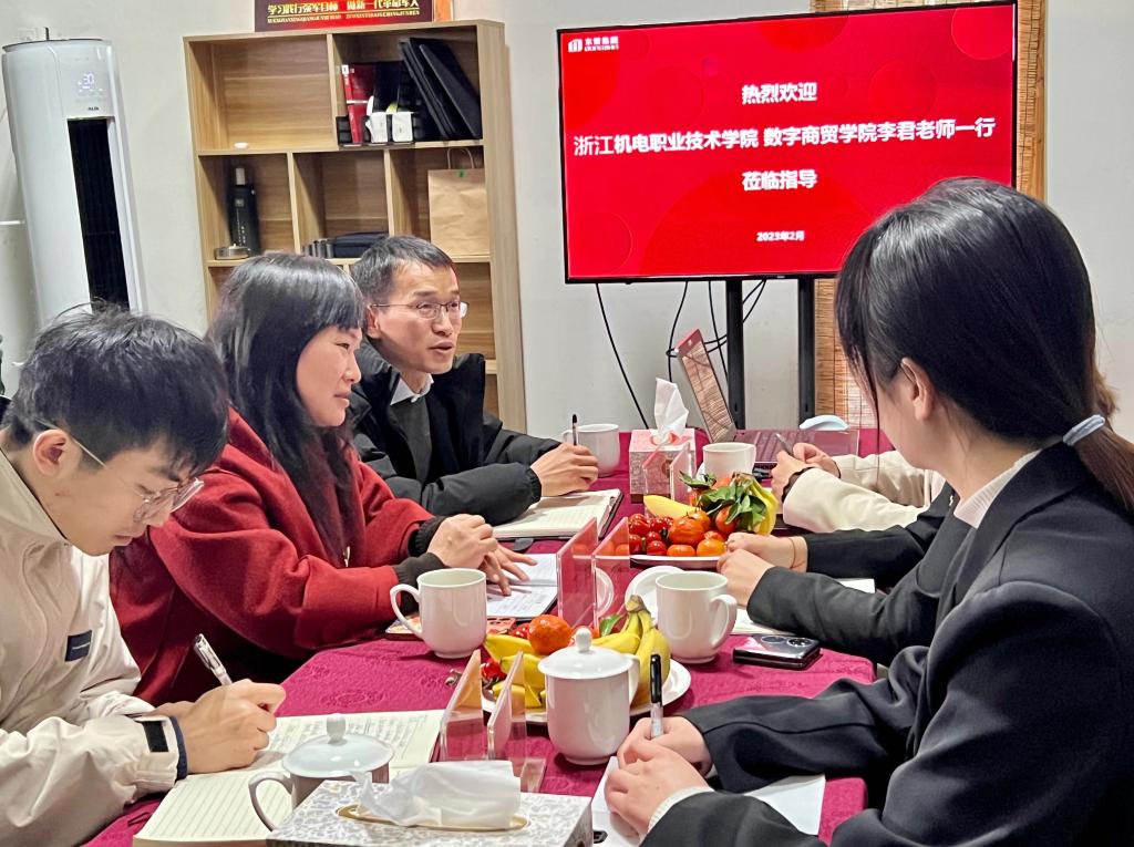 李君书记在了解企业岗位和用人需求后,详细介绍了数字商贸学院发展历程及毕业生专业分布,她表示,集团现有的人才培养模式为学校人才建设提供了新的思路和方向,希望企业继续保持与学院精准对接,在学生实习实践、就业指导等方面探索新的合作模式。李君书记强调,希望校企双方以此为契机创新校企协同育人体系,拓宽毕业生就业市场,进一步实现人才资源共育共享,强化供需对接,促进毕业生高质量高水平就业。