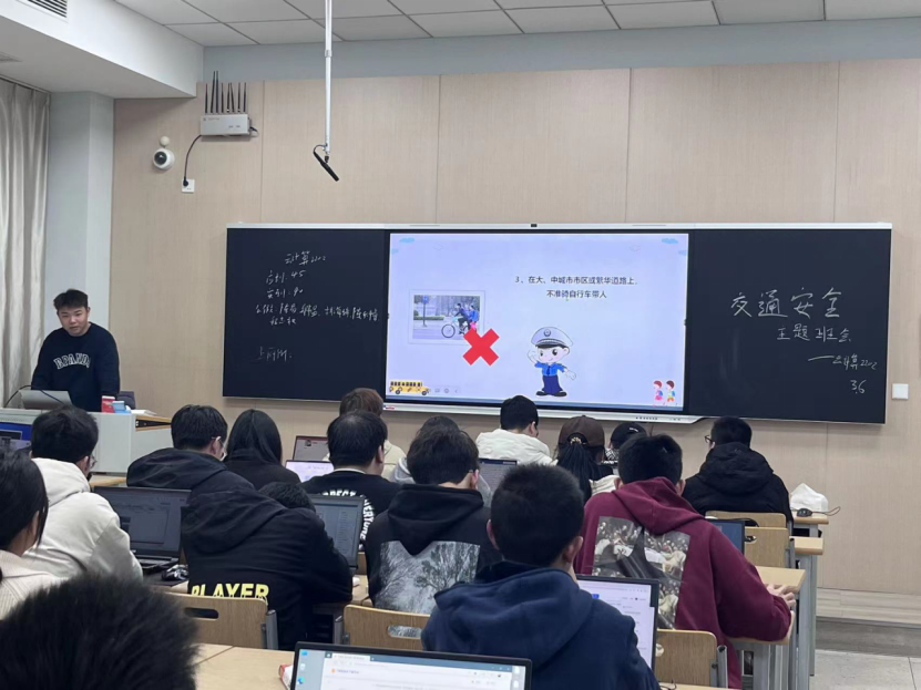 为落实学校“护航亚运 平安机电”大宣传、大检查、大创建活动,营造校园安全稳定氛围,现代信息技术学院开展安全系列主题班会活动,从而增强学生遵规守法和自我保护能力,提高广大同学交通安全意识。2023年3月6日至3月8日学院组织各班级开展了第一次活动——“知危险,会避险”交通安全主题班会。