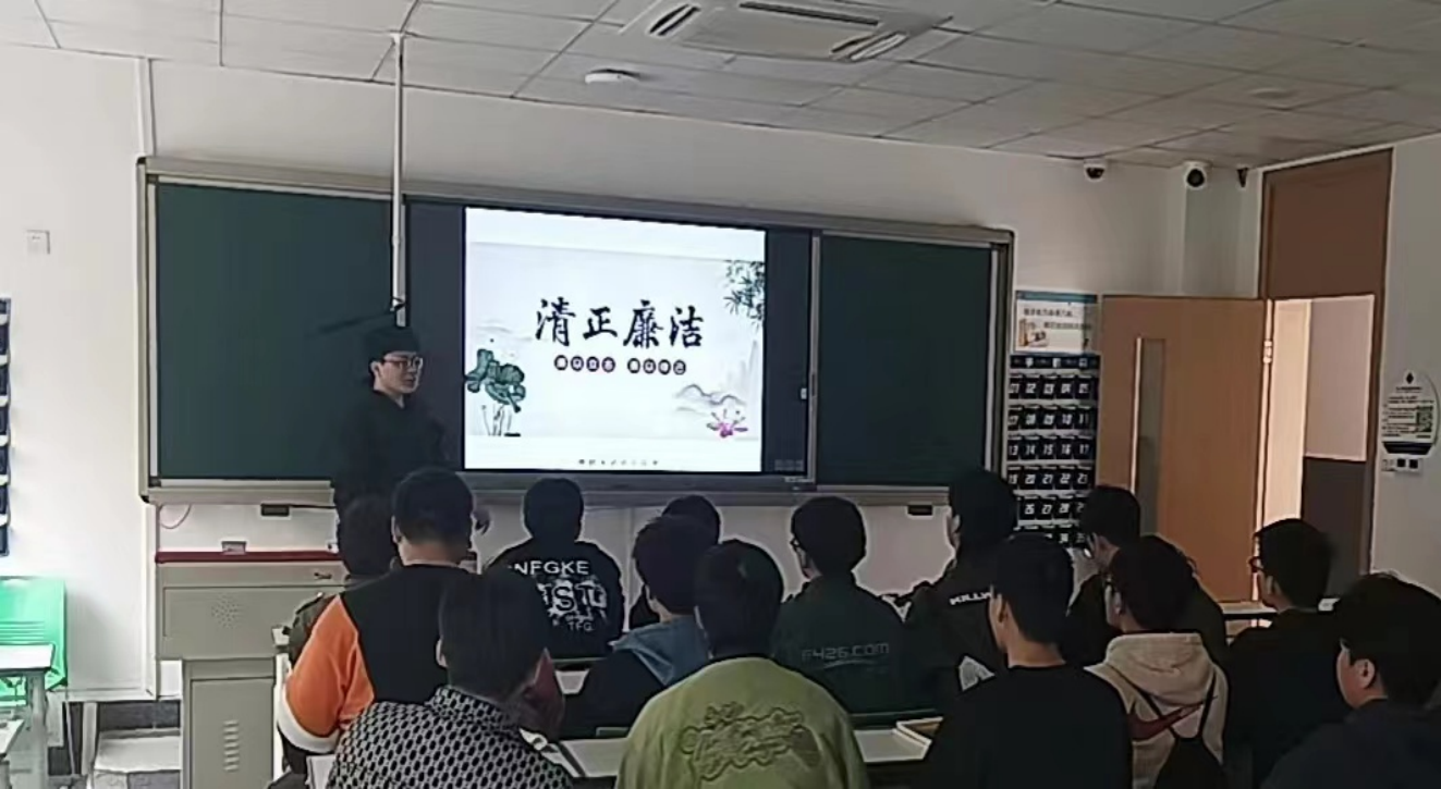 班会上,各班班委通过组织观看廉洁视频,分享廉洁故事,讲解身边案例等方式将清廉文化、诚信文化、礼仪文化等融入班级文化建设中,让学生进一步了解廉洁的深刻内涵以及廉洁教育对大学生的重要意义,从而教育同学们树立廉洁观念,增强廉洁意识,推动建成班级浓厚的清廉文化氛围。
