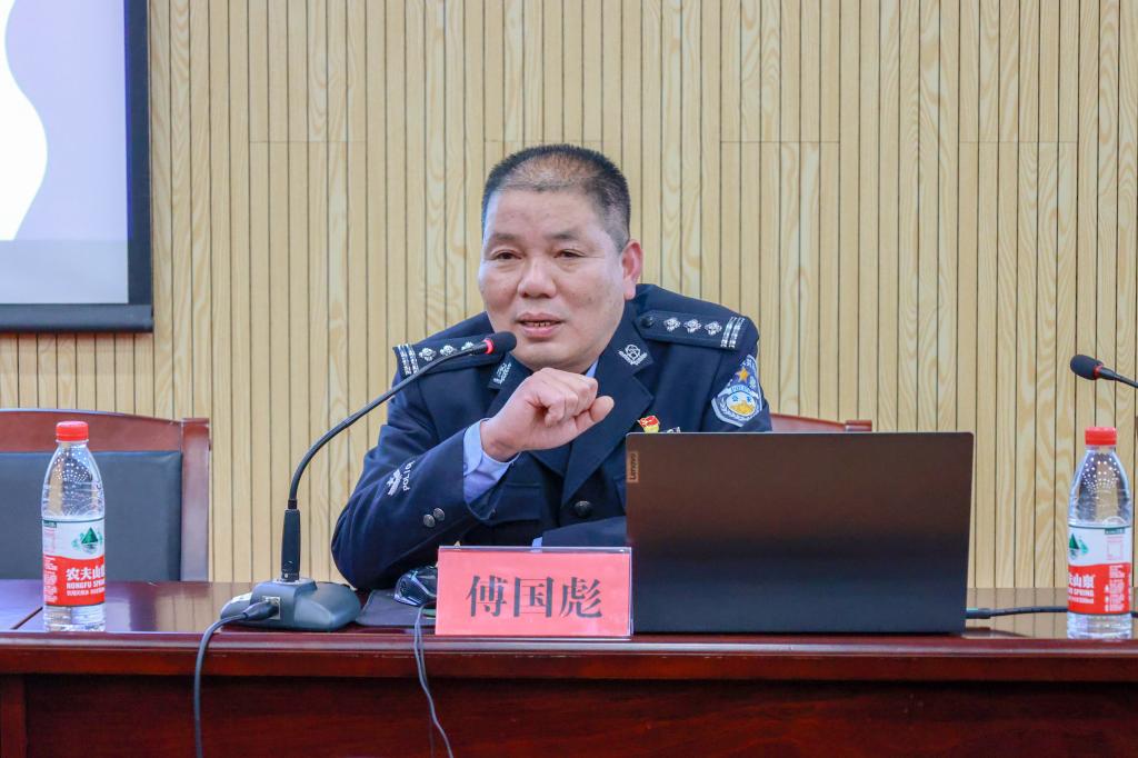 讲座邀请到了属地派出所有着三十多年从警工作经验的傅国彪警官为同学们进行生动讲解。首先,傅警官介绍了当前网络诈骗的几种常见形式,如刷单、裸聊、虚假中奖、招聘诈骗、网购诈骗、游戏充值等。随后,专家通过具体案例分析和提示,为在场师生普及了如何鉴别、防范网络诈骗的技巧和方法。