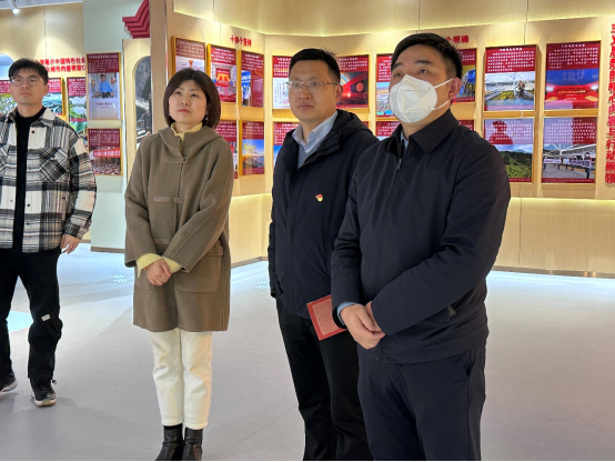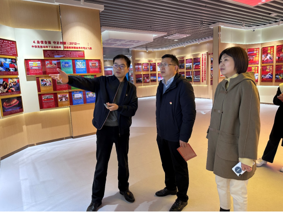 查院长陪同来宾参观了我院筑牢“红色根脉”主题实践教育基地。该基地以“筑牢红色根脉,凝心铸魂育人”为主题,以中国共产党建党百年为时空轴线;聚合红色信仰、红色历程、红色旗帜、红色沃土、红色基因、红色时空六大红色板块系列,以图文、实物展陈、VR沉浸体验、视听展播等多样化展陈资源;运用现代多媒体技术,多形式、立体化呈现中国共产党理论创新与实践发展成果,呈现我们党在四个历史时期的历史性成就与伟大变革。