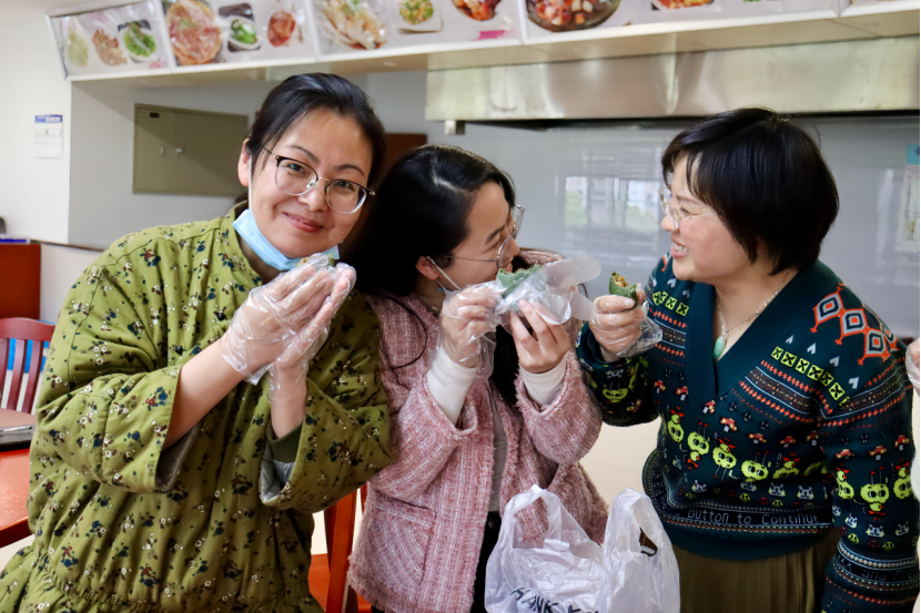 制作好的青团由食堂工作人员摆入蒸锅,等待之际,学院组织同学们参加答题互动游戏,通过答题游戏增长对清明传统文化的了解。开锅绿翡翠,遥知青团来,绿绿的软糯的皮儿,带有清淡的艾草香气,香糯可口。“自己亲手制作的青团,就是好吃!”师生纷纷表示初次体验包青团,感受到了不一样的春日味道,兴奋且有趣。