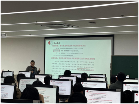 刘勇明副处长等分别讲解了采购相关制度的实施和固定资产管理系统操作流程,二级单位资产管理员、采购人员现场进行了实操,更全面地了解了资产管理与采购工作实务,为推进各项制度的实施奠定了良好的基础。通过专题业务培训学习,二级单位资产管理、采购人员深刻认识到采购与资产管理工作中的廉政风险点,有助于进一步督促资产管理和采购人员筑牢廉洁自律思想防线,增强防止腐败的免疫力,起到了警示教育提醒作用。