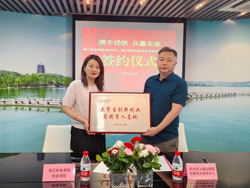 近日,浙江机电职业技术学院创业学院与杭州市上城区赋能创新创业服务中心战略合作签约仪式举行。双方就未来在大学生创新创业、产学合作、校企合作、创新成果落地孵化等多方面多维度达成深度战略合作。未来,双方将给予相互良好的信任关系,推动双方创新创业工作发展,实现资源的优势互补,实现共赢。