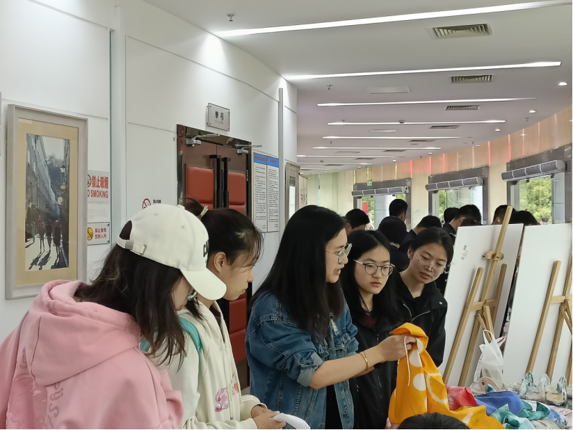 自动化学院传统扎染技艺工作坊联合图书馆举办读书节文化市集之扎染方巾制作活动