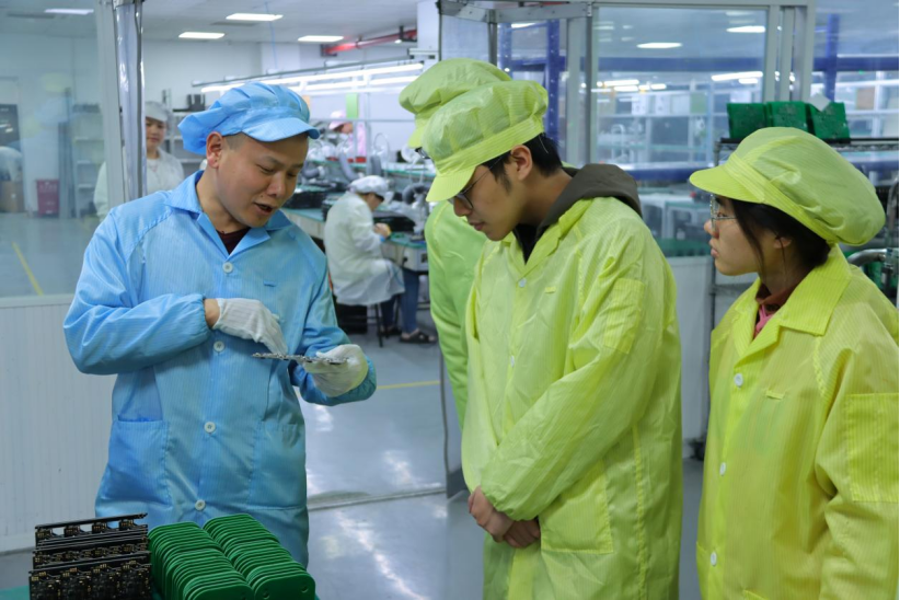 学院师生一行还参观了公司产品研发和加工中心,随后,校企双方开展座谈交流,会上,公司领导表示,当虹科技在电子技术、智能控制及电气自动化等专业领域,需求大量的专业技术人才,欢迎学院相关专业毕业生加入公司团队共谋发展。罗鹏举老师也勉励同学们通过实地参观走访,真正了解企业人才需求,优化职业生涯规划,找准定位,瞄定目标,奋力前行,最终实现人生价值。