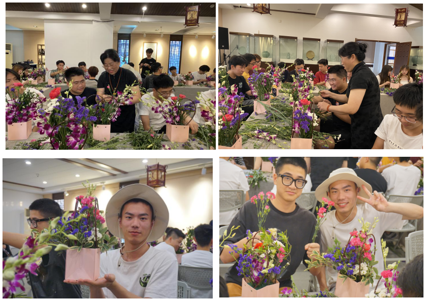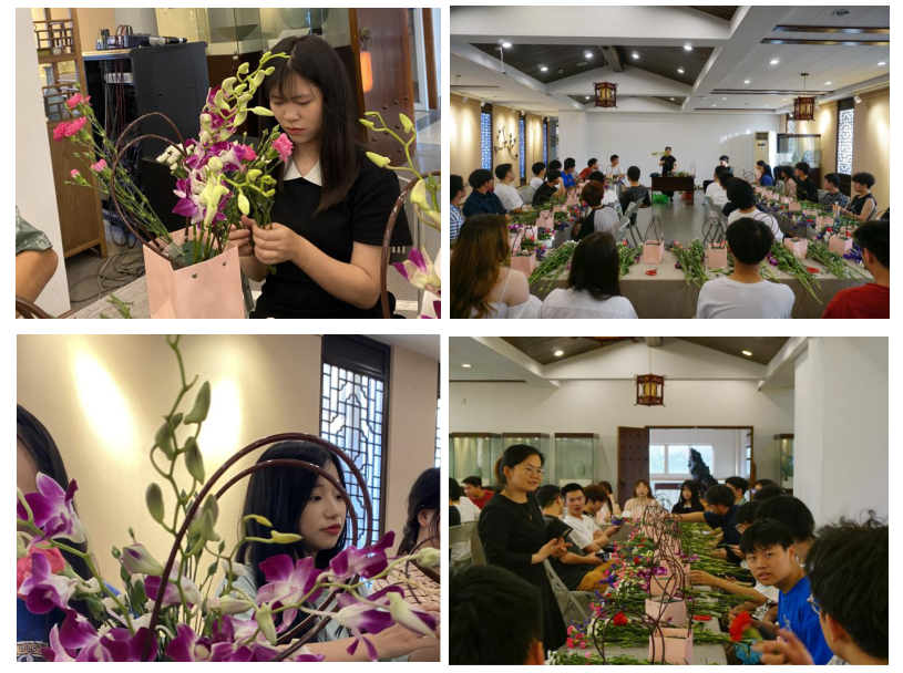 当天,范建文大师为同学们介绍了多种常见的插花与花材的知识,让同学们对花艺有了更深入的了解。随后,专家以实际操作为主,通过手把手的演示,向同学们传授了各种插花技巧。同学们跟随着专家的指导,在花艺专家和老师的帮助下,用心制作出了属于自己的插花作品。