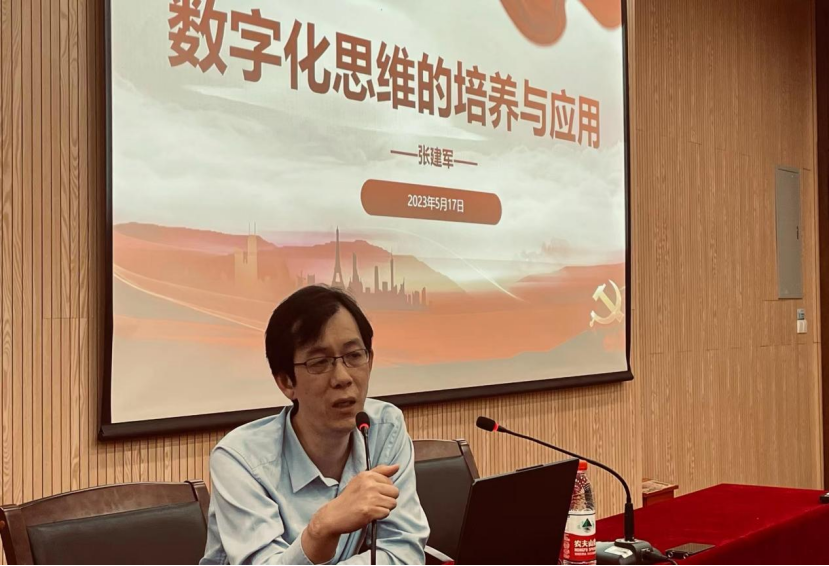 2023年5月17日,现代信息技术学院在5号楼2号报告厅开展梦想树——数字化职业生涯工作坊名师论坛暨学习贯彻习近平新时代中国特色社会主义思想主题教育系列讲座第三讲。此次名师论坛邀请张建军主讲,讲座主题是“数字化思维的培养与应用”。全体“青马”班学员参加此次讲座培训。