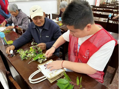 在志愿者同学带领和协助下,一件件精美的手工艺品就制作完成了。老人们开心地说:“没想到自己也能做出这么好看的作品,感谢同学们的帮助。”大家纷纷拉着志愿者们与自己的作品拍照留念,成就感和自豪感油然而生。