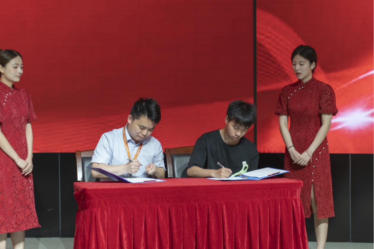 会上,由学校和企业领导为订单班成员订单班授旗和袖标,希望他们在今后的学习和工作中相互帮助、相互扶持、相互学习、共同提高。