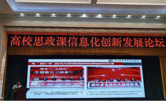 查教授受邀参加会议,并以《红色铸魂数字赋能构建“虚实一体”大思政课实践教学模式——基于筑牢“红色根脉”主题实践教育基地创新探索》为题做了精彩的主题交流发言。查教授指出,浙江机电职业技术学院马克思主义学院近年来以“大思政”课理念和“八个相统一”为根本遵循,依托浙江“红色根脉”资源优势和学校“双高”院校的数字化智慧校园优势,强力推进信息化赋能思政课创新,着力建构“虚实一体”大思政课实践教学新模式,并在学校大力支持下创建了筑牢“红色根脉”主题教育实践基地,积极探索基于大历史观、大数据观、大实践观视域下的“红色铸魂 数字赋能‘虚实一体’大思政课”实践育人新模式,不断深化虚拟与现实、历史与现实、理论与实践融合育人新成效。