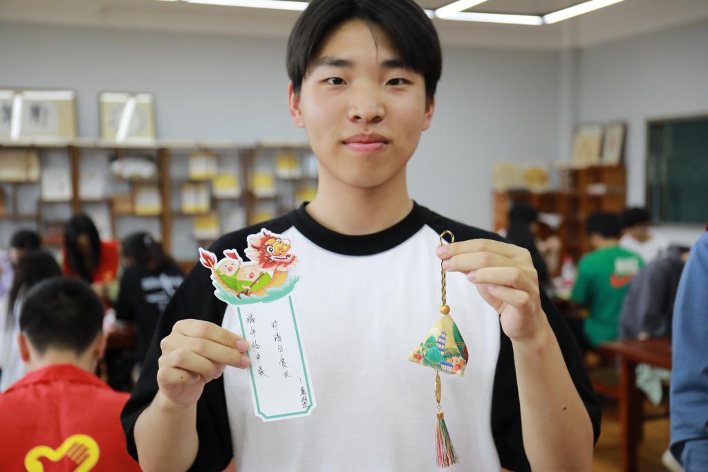 在现场,海宁市中心医院医务工作者们为我校师生普及当地的端午习俗,讲解配置好的中药包的药材,介绍其药性功能,教学香囊的制作方法,并指导师生们编制五彩绳结。活动现场氛围浓厚,同学们悟性很高,在一针一线中,迅速从制作“小白”到“熟练工”,不少同学学会制作了只需要缝一侧边的“简易版”香囊后,又主动要求制作从布料裁选到流苏配置都要手工制作的“进阶高难版”的香囊。
