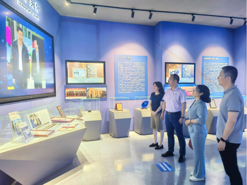 在中南集团代表的陪同下,创意设计学院党总支一行参观了中南企业文化馆并观看了习近平总书记考察中南卡通时的历史影像。自2003年成立以来,中南卡通依托集团力量高起点、大投入、国际化发展,致力于打造集动漫原创、全球发行、IP授权、文创文旅等为一体的动漫数字文化产业生态圈。2005年4月8日,时任浙江省委书记的习近平考察中南卡通时,作出了“动画不是用钱来衡量的。它能够为青少年提供健康的精神食粮”的嘱托。在习近平总书记的嘱托下,中南卡通坚持创作了一系列正能量的原创精品动画,累计创作了《天眼》、《魔幻仙踪》、《乐比悠悠》、《郑和下西洋》等17万分钟动画作品,获得国家精神文明建设“五个一工程”奖等各类国内国际奖项190余项,进入全球120多个国家和地区的发行系统。