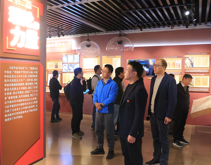 展览共分为《信仰的力量》、《理论的力量》、《组织的力量》、《人民的力量》、《斗争的力量》、《行动的力量》、《制度的力量》和《万山磅礴看主峰》等八个篇章,大家通过图文、视频资料展示,学习领悟了坚定的理想信念是共产党人奋勇向前、克难制胜的精神支柱和动力源泉;我们党始终重视思想建党、理论强党,注重学习,善于学习,把马克思主义这本“真经”学精悟透用好的历史;党的力量来自组织,干部是决定的因素;党的百年历史就是一部党与人民心连心、同呼吸、共命运的历史;共产党人具有“踏平坎坷成大道、斗罢艰险又出发”的顽强意志和铮铮铁骨,吓不倒、压不垮,敢于出击、敢打能胜;实干成就伟业”“幸福都是奋斗出来的;强大自我完善能力的先进制度,是当代中国发展进步的根本保障;中国特色社会主义最本质的特征是中国共产党领导,中国特色社会主义制度的最大优势是中国共产党领导。