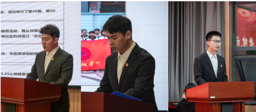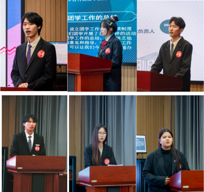 团总支副书记姚国庆、学生会主席江毅分别就过去一年工作作述职报告。大会通过了《选举办法》和总监票人、总计票人、监票人、计票人名单。随后,主席团竞选人及团学各部门竞选人依次上台进行竞选发言,他们分别从自己对部门职责的认知、自身竞选的优势、回顾一年来在所属部门参与的工作经历以及对于未来工作的展望等多个方面向老师、同学们进行展示,充分阐述了自己竞选的实力与决心,朝气蓬勃的他们尽情地展示着自信与才华,充分体现了学院坚持全面发展的教育理念和青春力量。本次换届选举秉持着“公平、公正、公开”的原则,按照个人申请、竞选演讲等流程选举新一届学生干部团队。