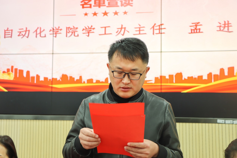罗鹏举老师宣布了本期业余党校优秀学员名单,其中自动化学院5名,国际教育学院2名。学员有序上台,陈罡书记和高水琴书记向优秀学员颁发荣誉证书并合影留念。