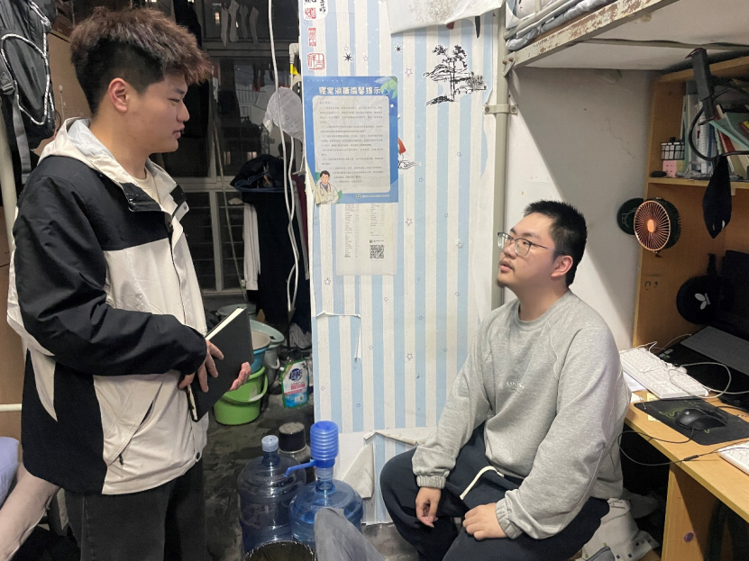 学生党员和本期发展对象或两人一组,或三人一组,逐户走访学院寝室,每一位走访人员都十分热情主动地与同学们交流谈心,向大家询问有关学习、生活方面遇到的困难;掌握同学们在校期间的实际需求;帮助开导同学们解决升学就业所产生焦虑问题。党员们如实记录走访内容,以方便及时反馈问题。