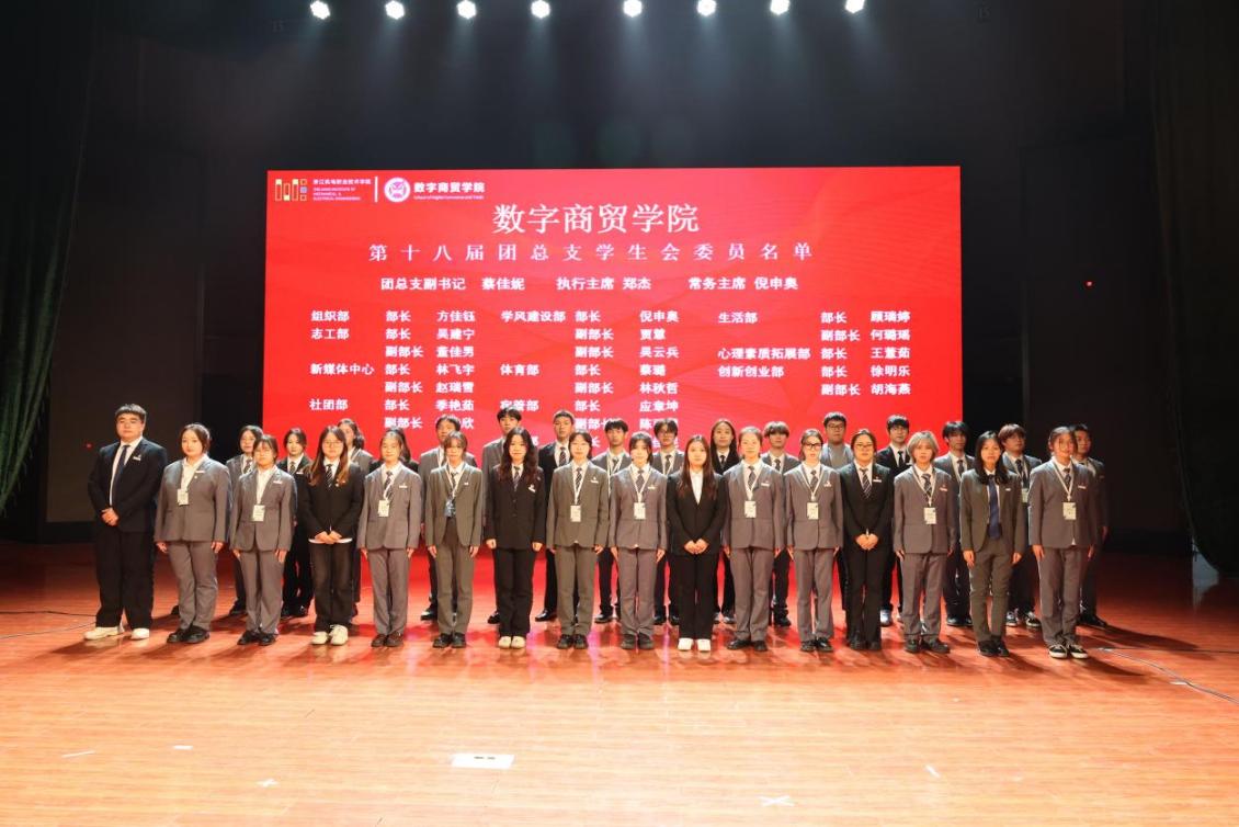 接下来是数字商贸学院团总支学生会代表换届挂牌仪式。迎新送往,换的是面孔,不变的是初心,期待新一届团总支学生会凝心聚力,共同为学院创造更加辉煌的篇章。
