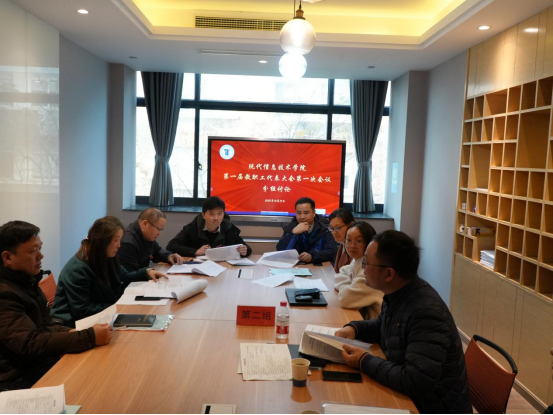 2023年12月13日下午,现代信息技术学院在滨江校区综合楼教师发展中心jf306召开第一届教职工大会。学院21名教职工代表出席会议,部分科级干部、高级职称教职工代表等列席会议。会议由分工会主席章国赞主持。