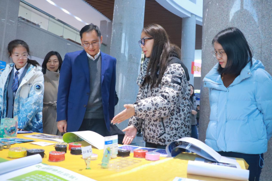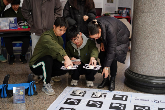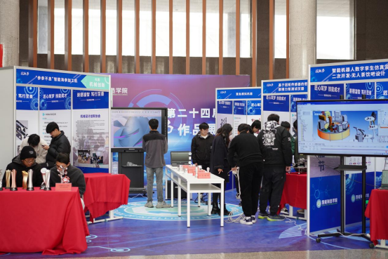 智能制造学院带来了今年机械创新设计大赛省一等奖作品“参参不息”智能海参加工机,以及最新设计的智能机器人——“得闲来饮”茶饮吧项目;自动化学院的无人机编队实现智慧飞行,吸引众多师生驻足观看;现代信息技术学院AI数字人、VR实景体验,让同学们在观展的互动体验中感受到了极大的乐趣;数字商贸学院将直播间搬到科技技能节现场,还原了直播带货的幕前幕后真实场景;创意设计学院通过《少年刘伯温现代游记——廉洁书签摆件》、《渔隐——文创香插作品》等优秀文创作品,展现大学生廉洁教育成果;智慧交通学院的飞轮动态平衡双轴自行车刷新了大家对自行车的传统认知;增材制造学院带来自行设计的新能源发动机及兵马俑造型等砂型3D打印模型展示;国际教育学院展示了留学生们带来的书法作品及中华传统乐器古筝演奏等“一带一路”文化传播成果。此外,各二级学院展台还配备专业的学生讲解员,用生动的描述、丰富的视效和详实的数据,全面系统展示今年以来学生取得的创新成果。同学们在展位前驻足观看,既为大家取得科技创新成果感到欢欣鼓舞,也对自己今后的学习努力、技术技能提升充满信心。