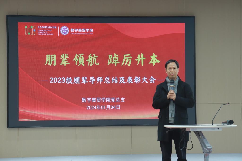 为进一步发挥学院优秀学子引领示范作用,传递榜样的力量,营造互帮互助的学习氛围,推进学院朋辈导师品牌特色更好的发展,数字商贸学院2023级朋辈导师表彰和总结大会于2024年1月4日在19号楼报告厅举行,学院党总支书记程勤华,海宁校区全体辅导员,2023级首席朋辈导师代表、全体朋辈导师和23级各班级学生干部共同参会,大会由学工办主任杨秀飞主持。