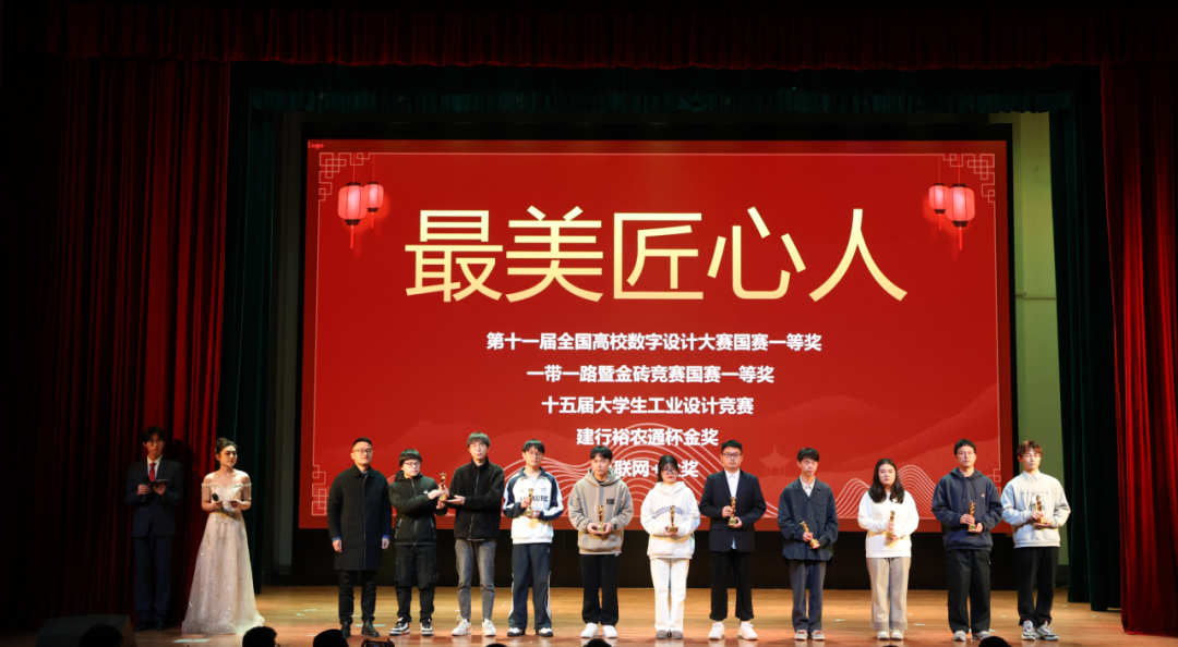创意设计学院每年有众多学生参加各类技能竞赛,三年来累计荣获国家级、省级奖项100余项,居全省同类专业前列。本次典礼为此特设了“最美匠心人”的荣誉。创意设计学院党总支委员、工业设计专业负责人沈佳彬为这些获得全国高校数字设计大赛、一带一路暨金砖竞赛、十五届大学生工业设计竞赛、建行裕农通杯乡村振兴竞赛、互联网+创新创业竞赛的代表进行了荣誉颁授。工业设计竞赛获奖作品代表还向在场嘉宾进行了作品的展示与介绍。