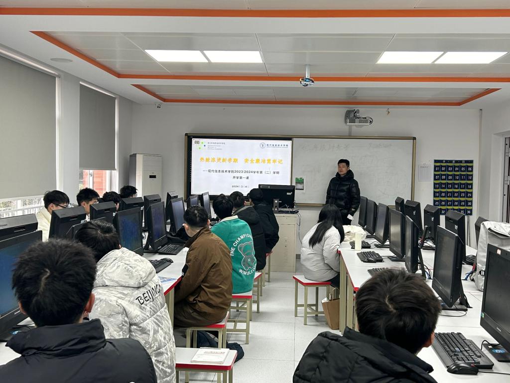 3月4日开学第一天,现代信息技术学院组织各班开展2023/2024学年第(二)学期开学第一课,引导同学们坚定理想信念、锚定奋斗目标,增强校园安全廉洁意识,为新学期蓄力赋能。
