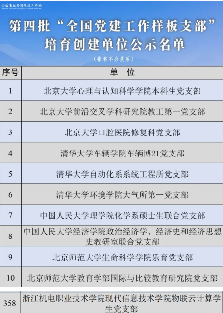 3月18日,在教育部思想政治工作司公布的第四批“全国党建工作样板支部”培育创建单位评审结果中,现代信息技术学院党总支所属的物联云计算学生党支部成功入选,实现了从“全省党建工作样板支部”培育创建单位到“全国党建工作样板支部”培育创建单位的新突破!