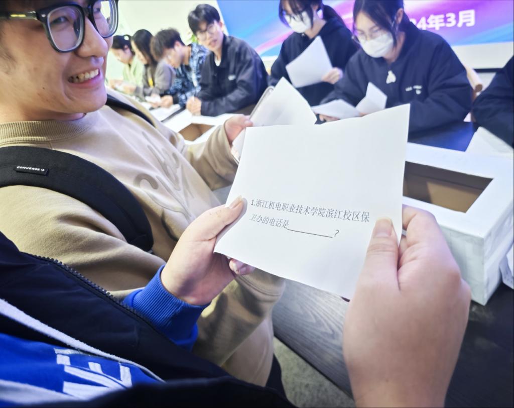 为进一步夯实网格员管理制度建设,加强网格员应急处置能力,提高学生自我保护能力,强化学生安全意识,营造安全和谐的校园氛围,现代信息技术学院于3月27日下午在综合楼一楼大厅举办“安全伴我行,知识守未来”网格员安全知识技能大比武。