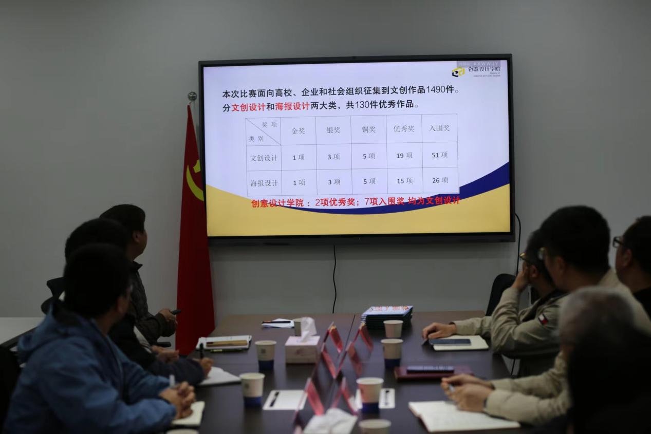创意设计学院党总支纪检委员齐云龙介绍第二届“廉潮杯”全国廉洁文创作品设计大赛优秀作品及创意设计学院备赛及获奖情况,并对赛事组织提出改进意见与建议,同时汇报创意设计学院廉洁教育的工作设想。