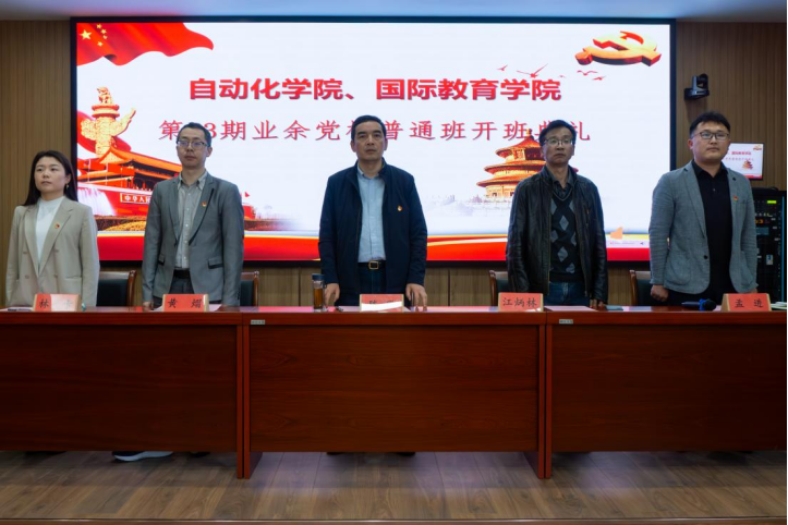 4月10日下午,自动化学院、国际教育学院联合举办的第53期业余党校开班典礼在海宁校区18号楼203室隆重举行,自动化学院党总支书记陈罡、国际教育学院党总支组织员江炳林、国际教育学院党总支委员黄熠、自动化学院学工办主任孟进、智控电子学生党支部书记林卡及本期业余党校59名学员参加了本次开班典礼。开班典礼由自动化学院学工办主任孟进主持。