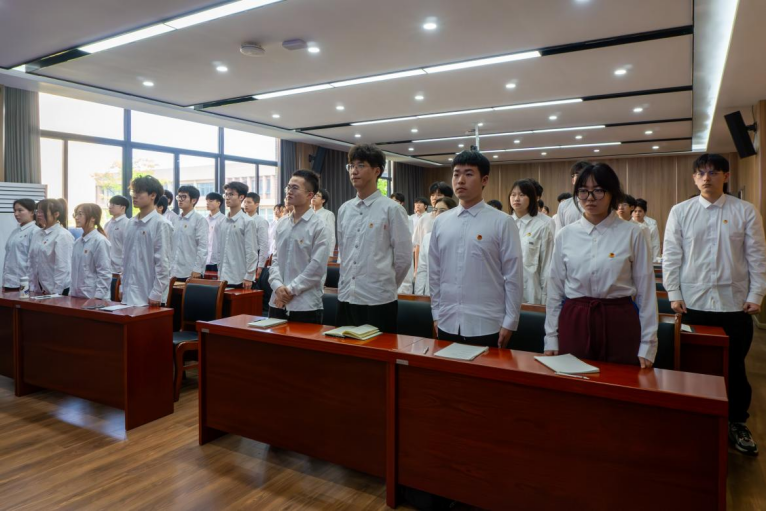 在奏唱国际歌后,江炳林老师介绍了本期业余党校教学安排,林卡老师对本期业余党校的学员条例进行宣读。机电2334班阮律翔同学代表全体业余党校学员在会上发言。他提出,作为一名在校大学生、一名新时代的有志青年,要对自身综合素质的要求更高,他也表明了加入中国共产党的决心,提出要以更加饱满的热情、更加端正的学习态度、更加刻苦的学习精神投入到这次学习当中,以实际行动提高我们的能力担当。