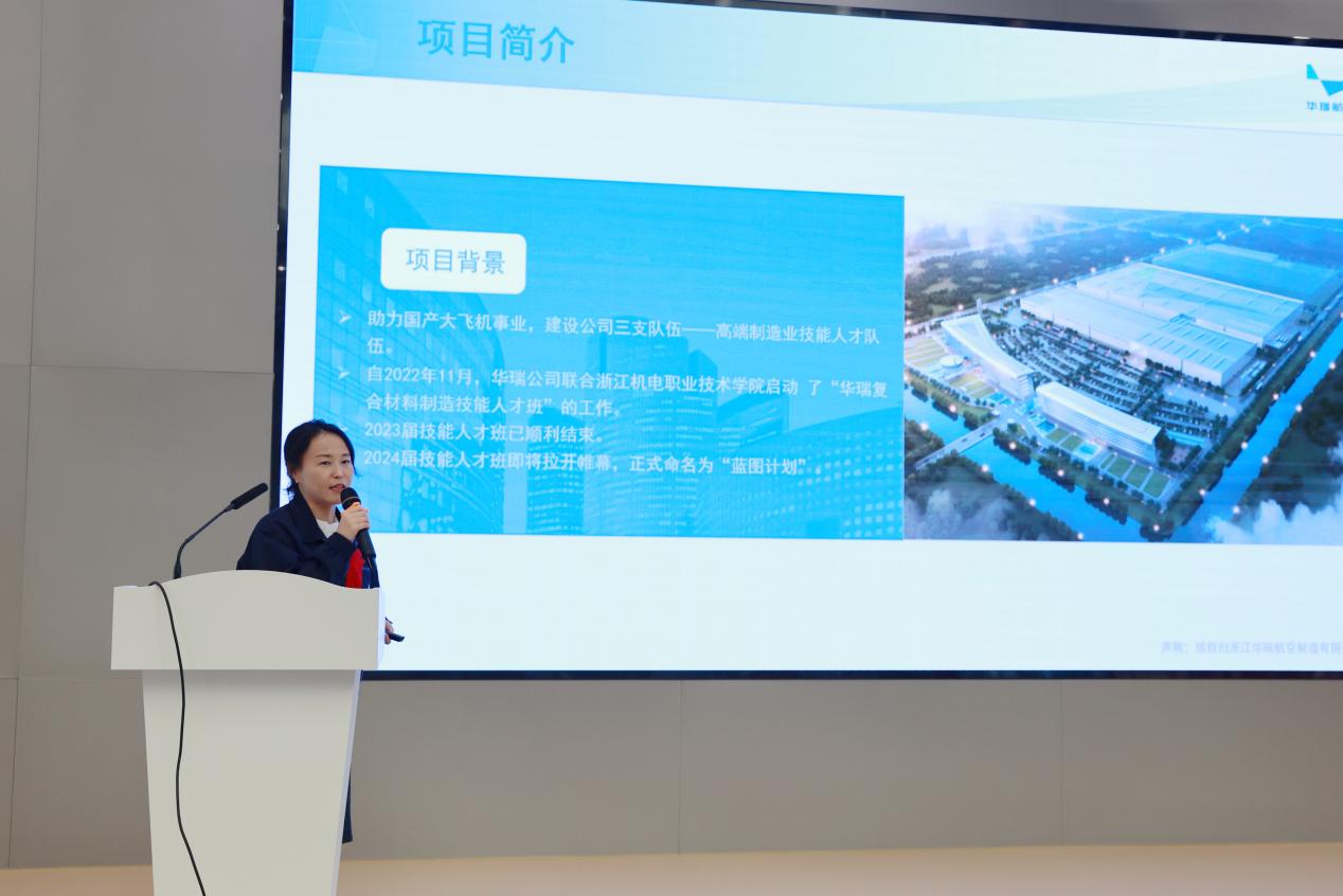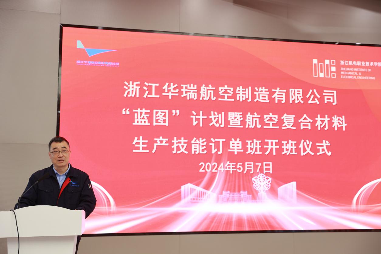 郑佐鹏在欢迎致辞中表示,华瑞公司是浙江省深度参与国家大飞机战略,全力打造航空航天“万亩千亿”新平台的旗舰项目。今年以来,公司全面加强“三支队伍”建设,强化与机电学院校企联动,启动航空复合材料生产制造订单班“蓝图计划”人才项目,不断优化合作机制、深化产教融合,聚力打造高素养劳动者队伍,为型号项目提供强有力的技能人才支撑。