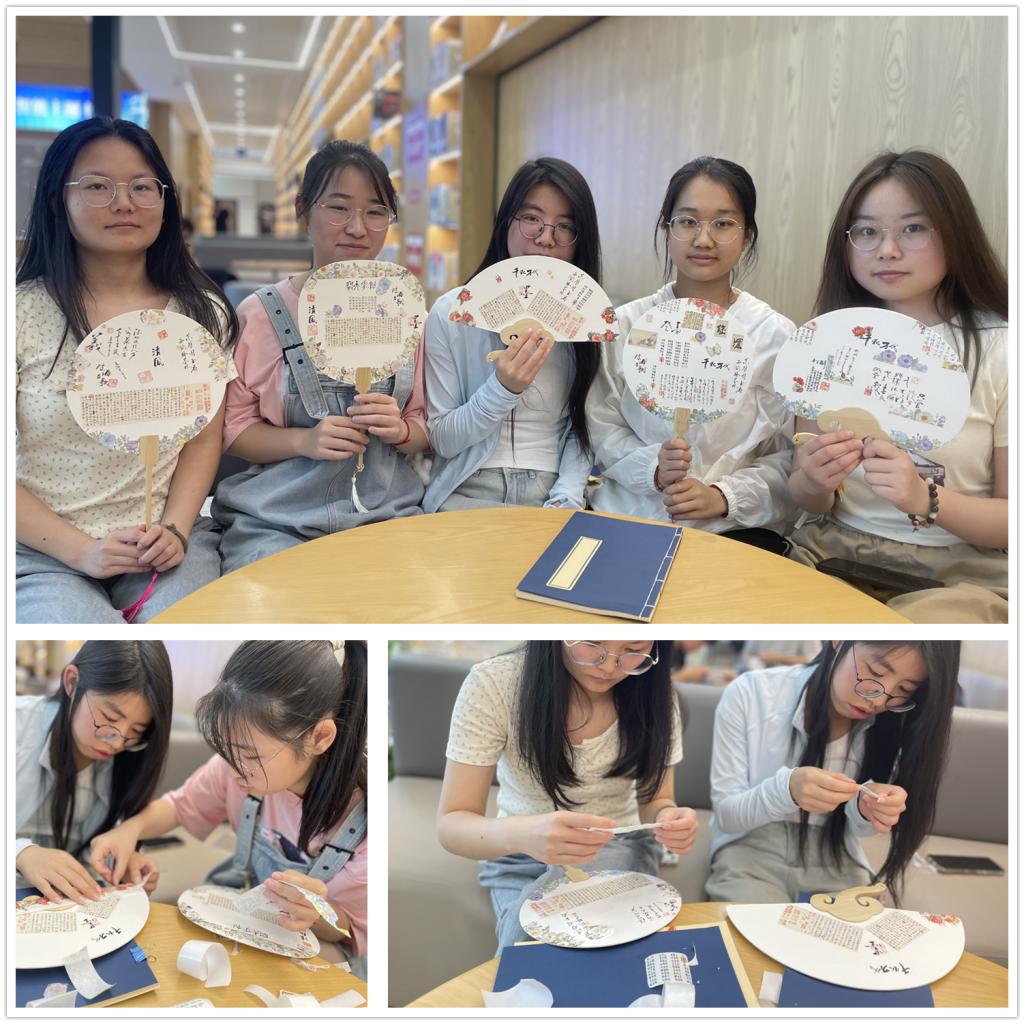 扇子是古时文人雅士的必备之物,是中国传统文化的重要载体之一。活动现场,在老师的指导下,同学们娴熟地将各种材料巧妙地搭配在一起,有的选择了淡雅的花卉图案,将清新的气息融入团扇之中;有的则选择了苍劲的诗词歌赋,让团扇充满了浓厚的文化气息。制作完成的折扇,有的清新淡雅,有的华丽富贵,有的简约大气,彰显了同学们高雅的情趣和志趣。