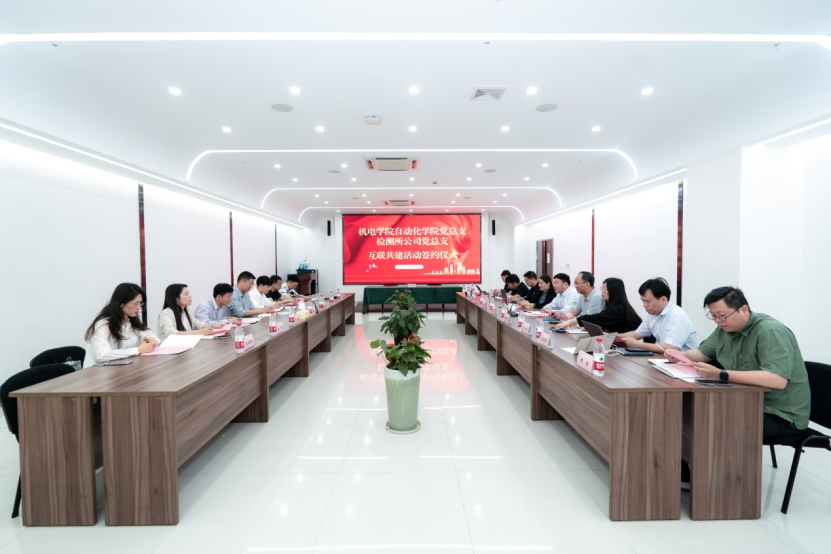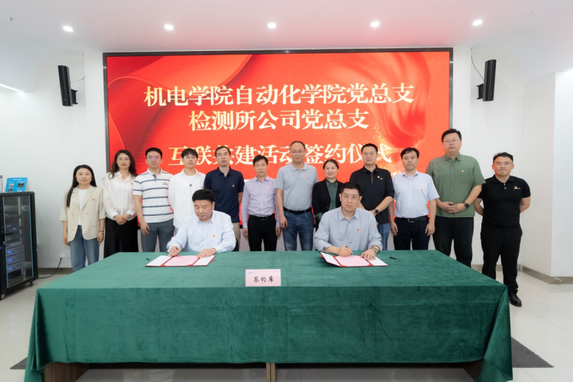 5月17日上午,浙江机电职业技术学院自动化学院党总支与浙江省机电产品质量检测所有限公司党总支互联共建活动签约仪式在省机电检测所公司滨江基地举行。自动化学院党总支副书记罗鹏举,公司党总支书记、董事长姜耀林,副总经理何朝辉,副总经理、党总支副书记盛英英及相关部门负责人、党员教师参加活动并座谈。