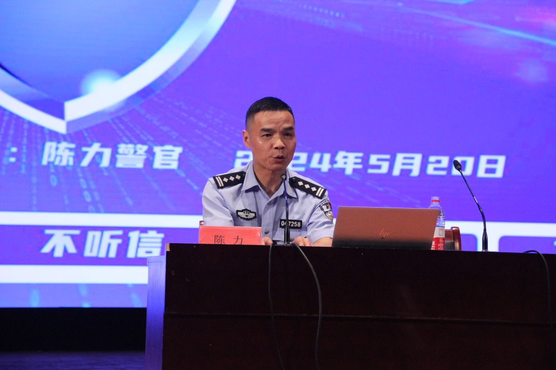 四级网格是我校推进学生自我管理的“最小单元”,也是实现学生管理全覆盖、学生服务零距离、学生诉求快响应的“最后一米”,为提升我院四级网格员的朋辈引领能力,5月20日晚学院邀请长安派出所民警陈力走进校园开展“大学生安全教育之安全伴我行”主题教育宣讲活动。学院党总支副书记李君、学工办主任杨秀飞、辅导员章行、22和23级各班安全信息员和四级网格员共同参与宣讲活动。