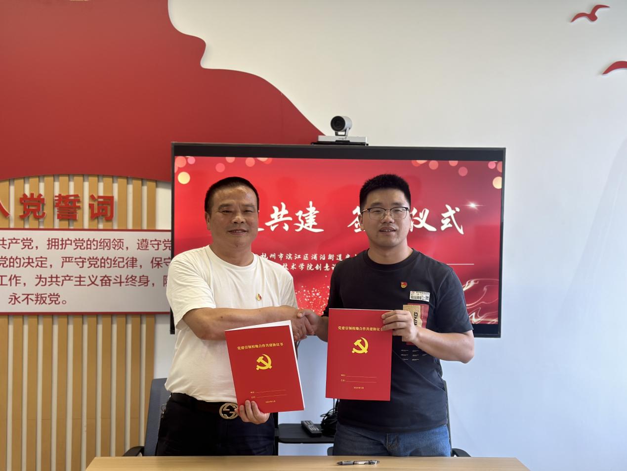为进一步加强基层党组织的交流合作,落实党建引领高校服务地方发展,拓展党建合作新思路、新模式,5月23日,创意设计学院党总支书记符强、工业设计学生党支部书记庞万兴、组织委员董思雨前往滨江区浦沿街道岩大房社区开展党建共建合作协议签约仪式。岩大房社区党委书记傅柏根、副书记华国军、党委委员傅叶茂和来燕飞出席仪式。