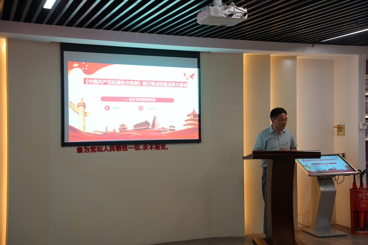 最后,智慧交通学院党总支书记黄柯信为广大师生党员带来了一堂主题为“《中国共产党纪律处分条例》修订要点和重点条文解读”的纪律党课。黄书记向大家分享了《中国共产党纪律处分条例》三次修订的要点内容,并以实际案例对新增或修改的重点条文进行了解读学习。黄书记表示,每位党员师生都要时刻把纪律挺在前边,牢记自己的党员身份和党员使命,希望大家认真的学习。