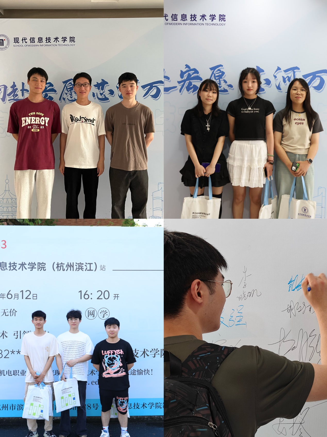 温情与欢乐的离校仪式。学院为每一位2024届信息学子准备了学院特色的精美纪念品;一张饱含“前程似锦”寓意的“车票”;别具一格的精致签名墙。班主任与同学们签名留念、欢乐合照。