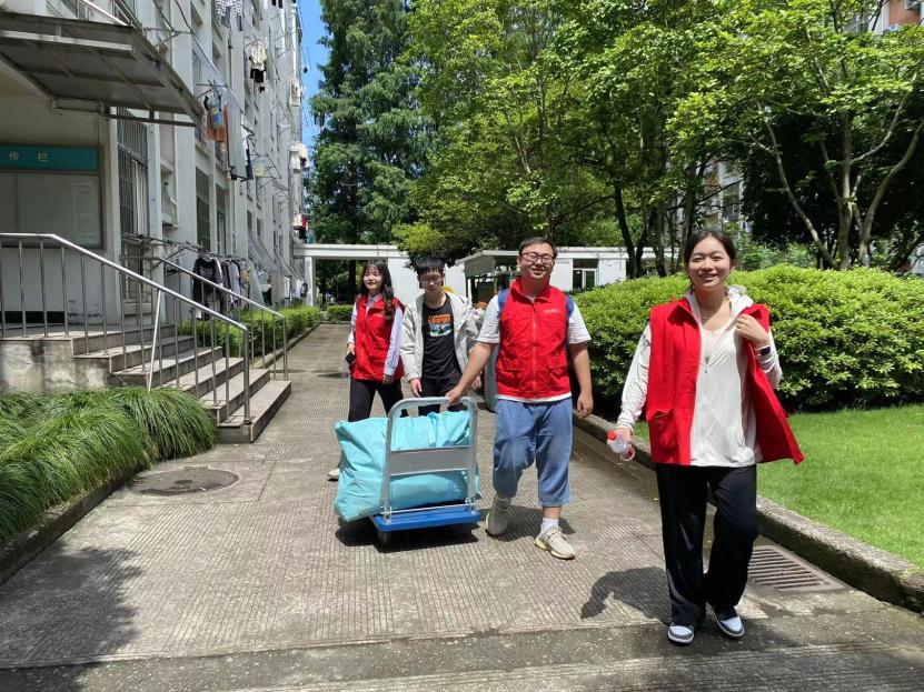 全体学生党员成立志愿者服务队,在立德园设立“红小匠“党员先锋助力岗,帮助毕业生搬运行李。他们充当行李的装卸工,在闷热的天气下,哪怕挥汗如雨,他们也不曾有一丝抱怨,一分懈怠。活动过程中,党员志愿者们以饱满、积极的态度展现了共产党员的精神风貌,彰显了志愿者的奉献精神,充分体现了自动化学院学子无私奉献、乐于助人的精神品格。
