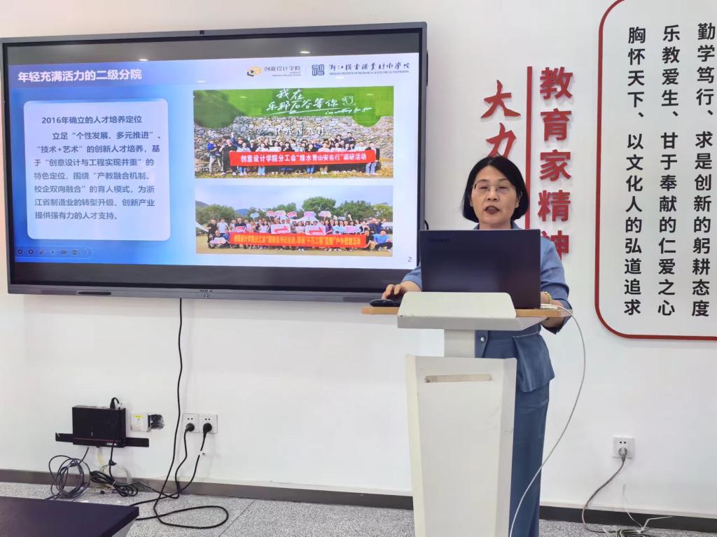 创意设计学院院长邓劲莲就学院近年来进行的各项工作进行了全面汇报。她详细介绍了学院在教育教学、师资队伍、科研平台、社会服务等方面的工作进展和亮点,同时也指出了当前学院在专业升本过程中面临的一些困难和挑战。