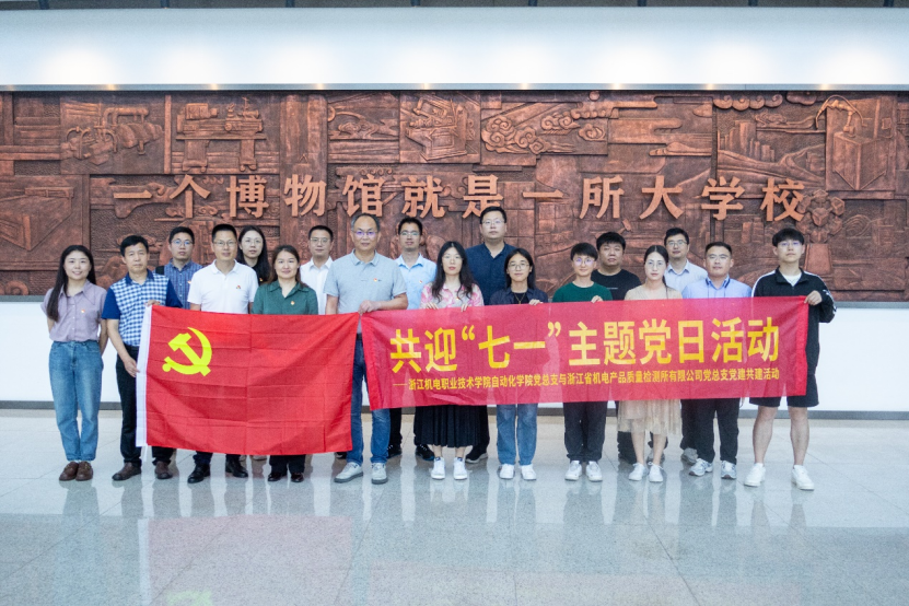 在庆祝中国共产党诞生纪念日之际,为进一步加强校企合作,促进资源共享与人才培养,6月25日,浙江机电职业技术学院自动化学院党总支与浙江省机电产品质量检测所有限公司党总支联合举办了以“共迎‘七一’”为主题的主题党日活动。自动化学院党总支书记陈罡,副院长王耀军,公司副总经理何朝辉,副总经理、党总支副书记盛英英,及相关部门负责人、党支部书记、党员教师代表参加活动并座谈。