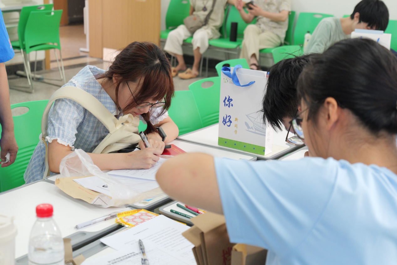 新生们在老师的组织下,有序注册、领取资料。学院志愿者们分散在校园各处,用满满的热情和温暖的笑容迎接每一个新生,他们像校园里的超级英雄,手提行李、指引方向,为新同学送上第一份温馨帮助。