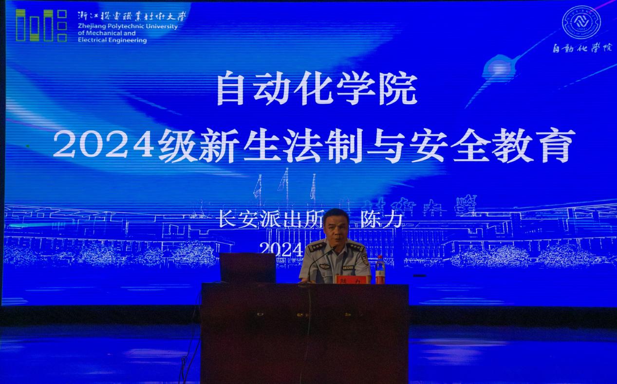 为了强化2024级新生的安全意识,提升同学们的安全素养,9月14日晚,自动化学院于海宁校区小剧场开展了一场题为“2024级新生法制与安全教育”的专题讲座,邀请到长安派出所陈力警官主讲,学院辅导员、班主任、团学干部及2024级全体新生共同参与,讲座由学工办主任孟进主持。