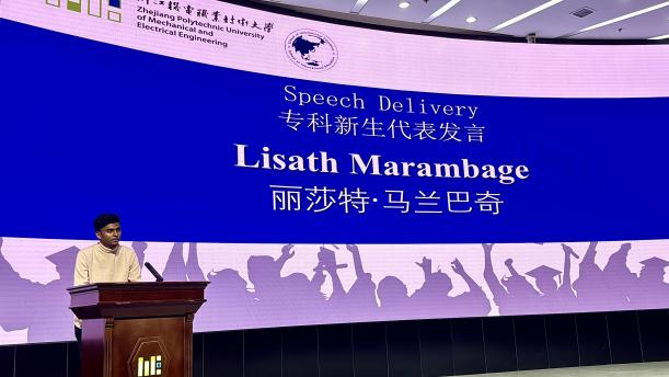 本科新生代表卓鹏对学校给予他们继续攻读智能制造本科专业的机会表示深切感谢。他号召同学们珍惜机会,认真学习,努力拼搏,成为浙江机电职业技术大学的骄傲!丽莎特·马兰巴奇作为专科新生代表发言,表达了对即将开始的留学生活的憧憬与期待。同时也承诺将会努力学习,积极参与校园活动,展现良好的精神风貌。